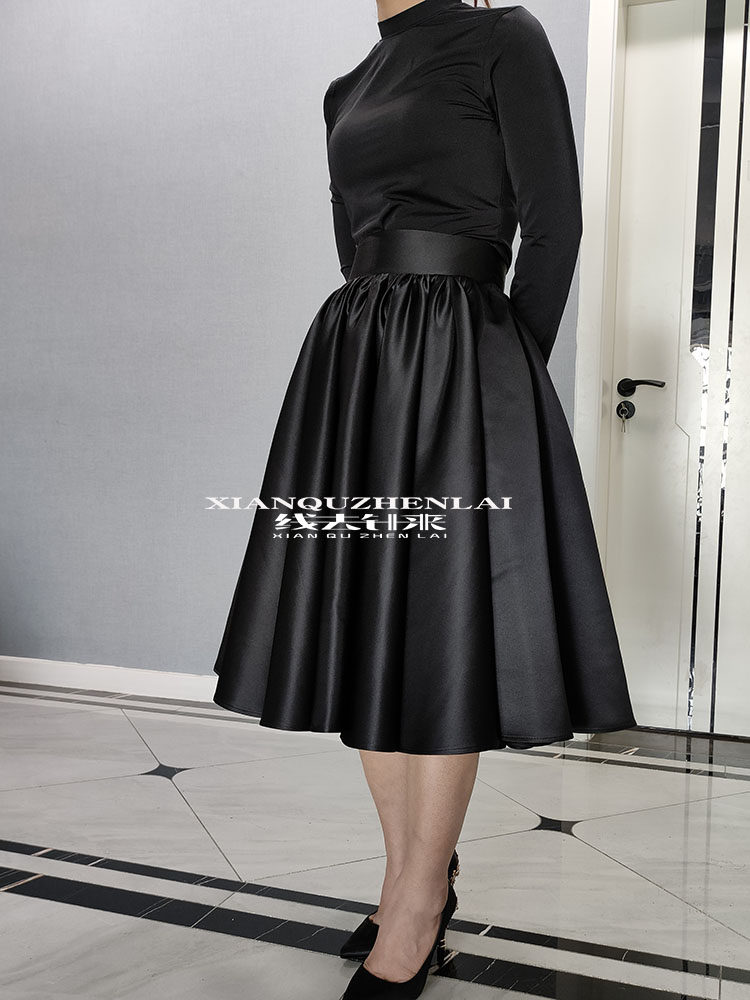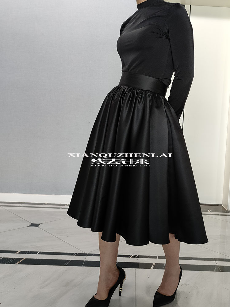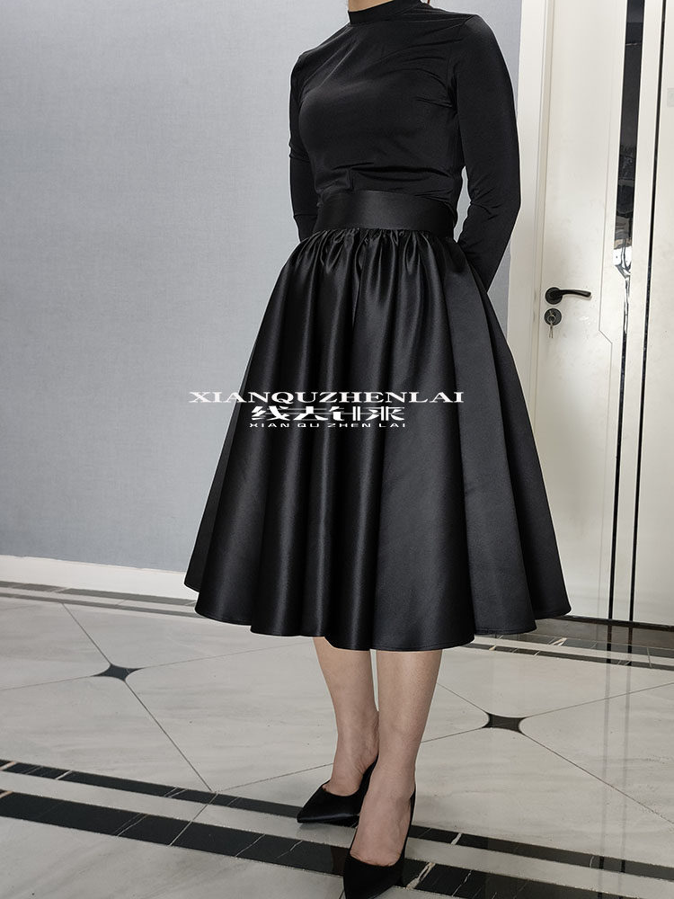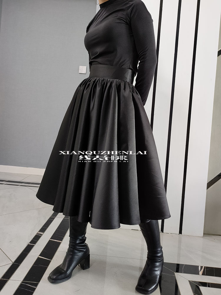 欧美复古高腰半身裙女2024新款大摆伞裙中长款a字黑色蓬蓬短裙