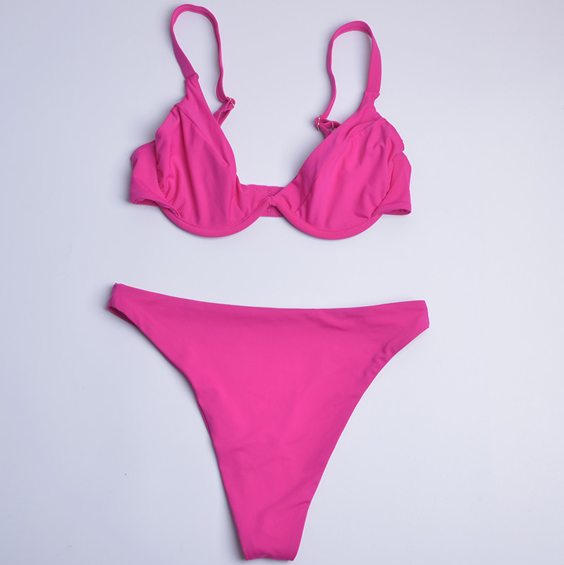 外贸品牌性感度假纯色比基尼泳衣女T裤半包臀bikini泳装多色