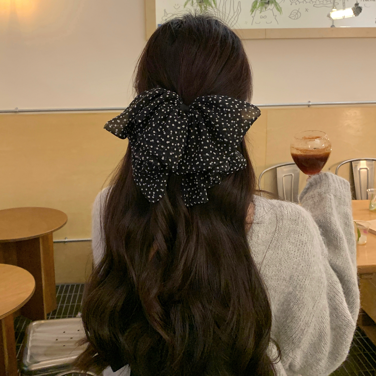 法式复古波点蝴蝶结抓夹小号鲨鱼夹半扎发夹气质百搭发饰韩系头饰