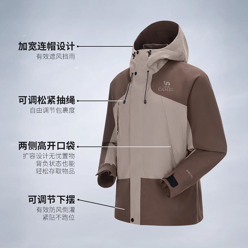 骆驼男装冲锋衣男新款户外防暴雨硬壳风衣运动登山服夹克外套