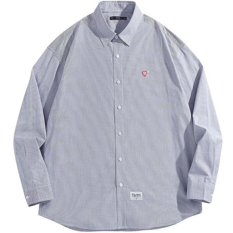 太平鸟男装 休闲衬衫蓝白刺绣时尚印花衬衫格纹衬衫上衣 当季热卖