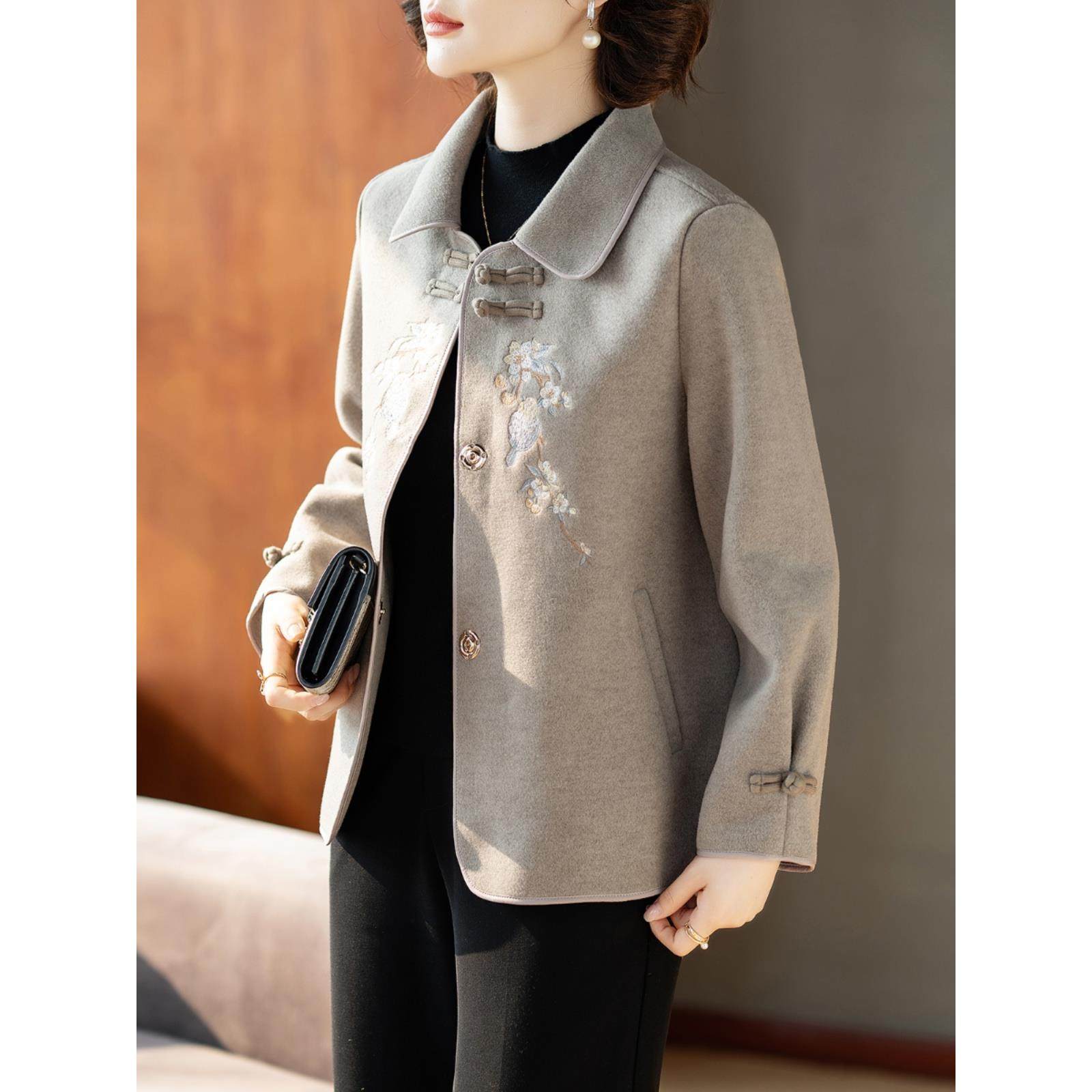 中年妈妈秋冬毛呢子外套洋气2025新款中老年人女士秋装上衣服50岁