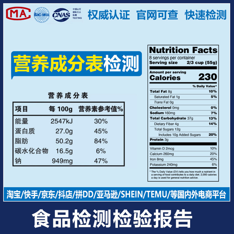 食品营养成分表标签检测报告保健品膳食补充剂COA分析说明书常规