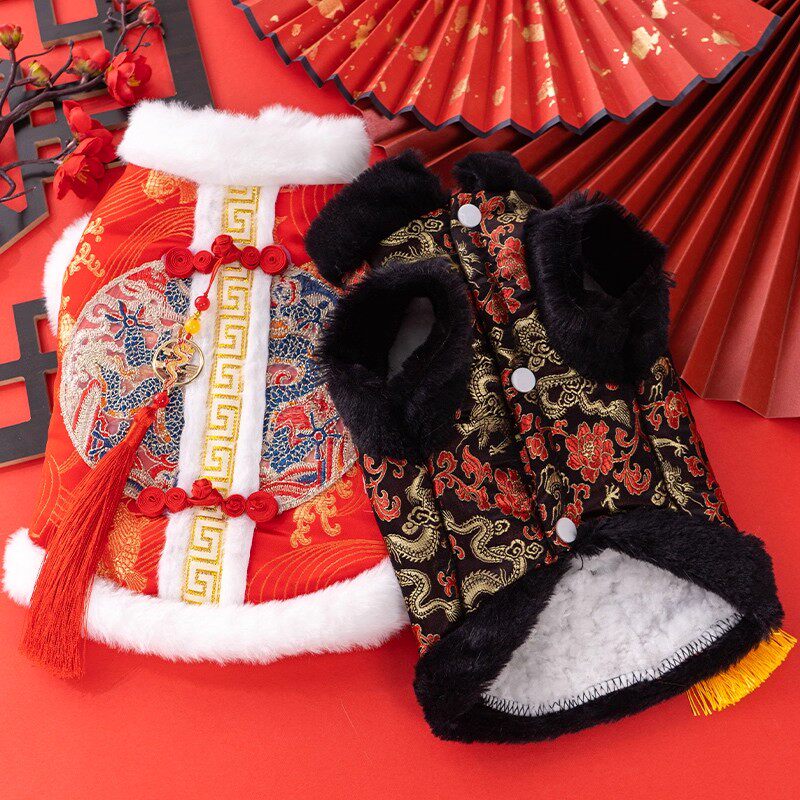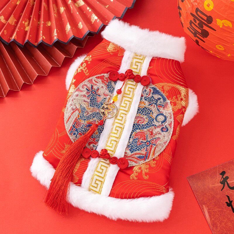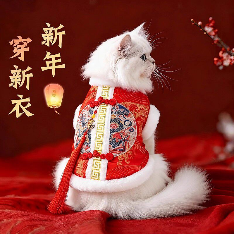 猫咪喜庆刺绣唐装新年冬天保暖德文布偶英短金渐层防掉毛过年衣服