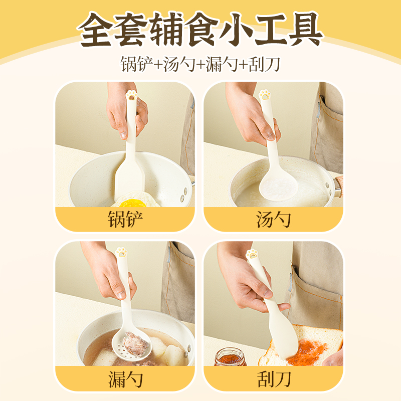 拜格硅胶锅铲小号汤勺子厨房婴儿宝宝辅食迷你工具不粘锅专用套装
