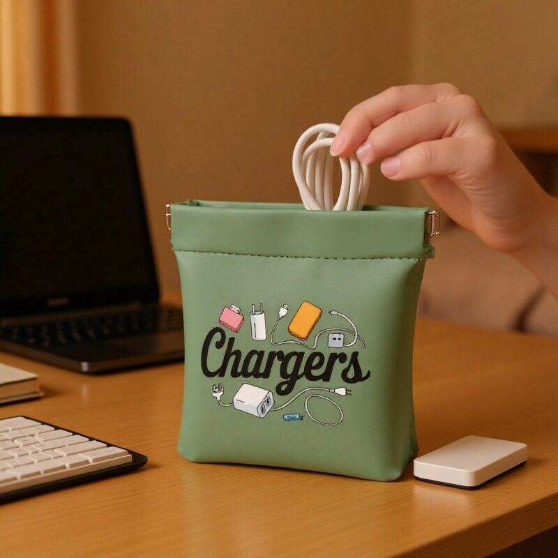 便携弹片收纳包 数据线充电器整理袋 眼镜可爱小物收纳袋
