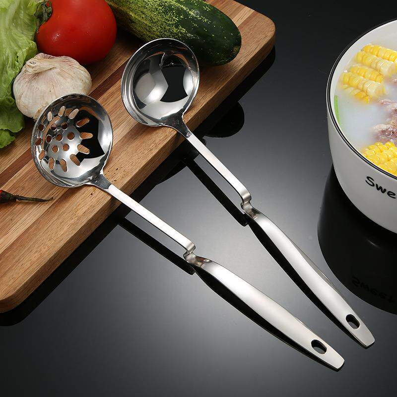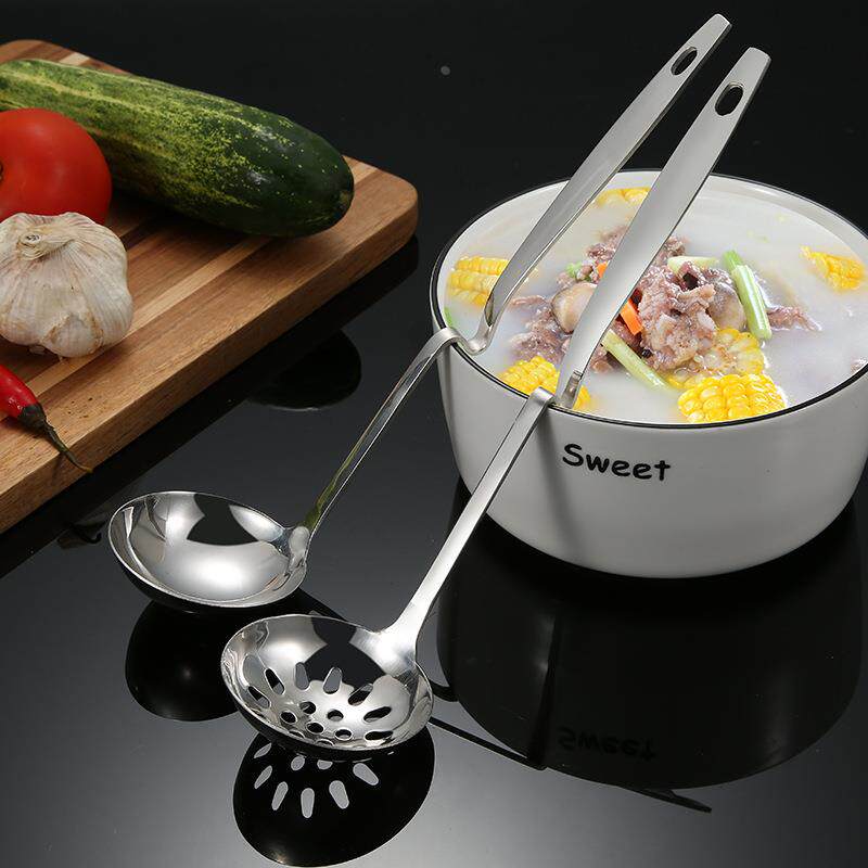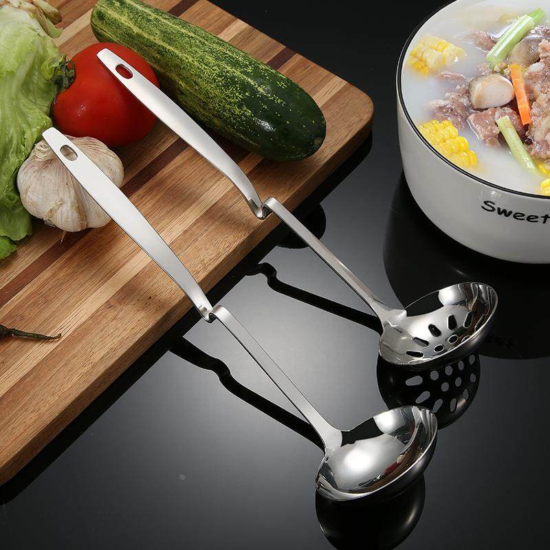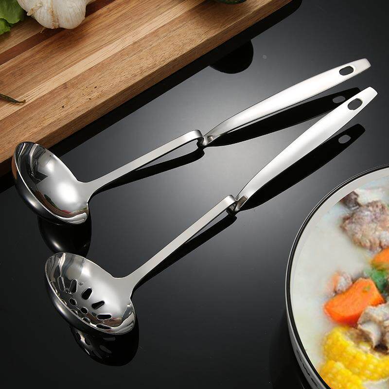 不锈钢汤壳漏勺家用厨房烹饪用具汤勺汤漏长柄餐厅火锅店悬挂勺子