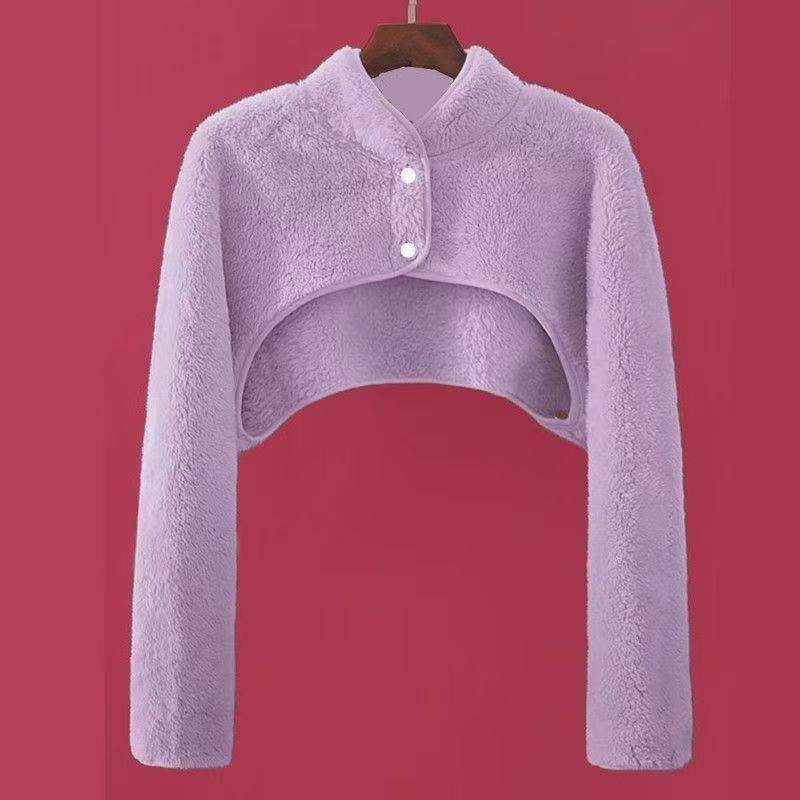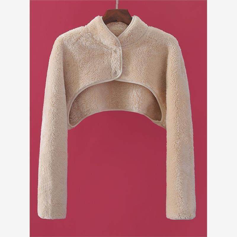 日本护肩睡觉专用女士肩颈保暖长袖坎肩女珊瑚绒喂奶披肩玩手机20