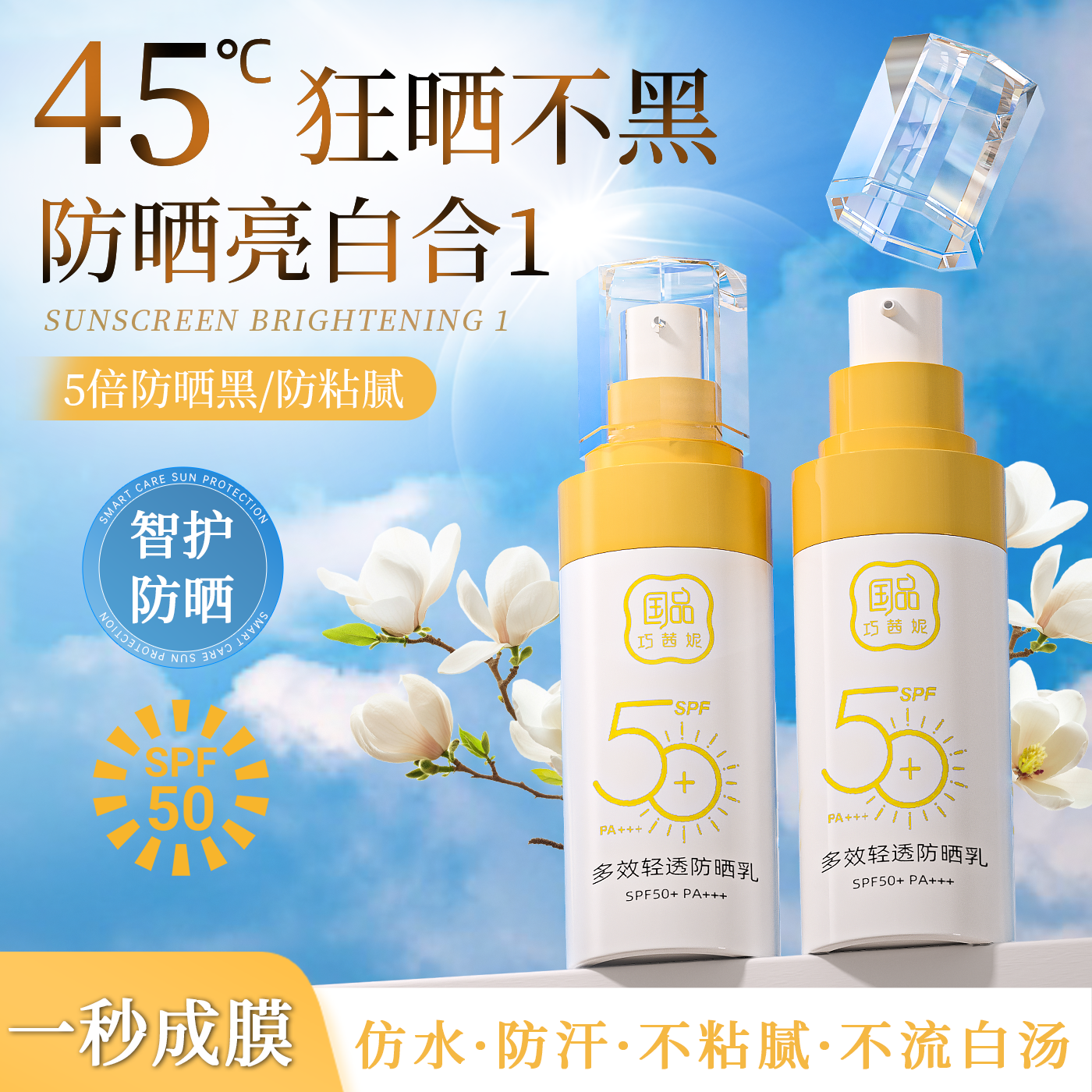 巧茜妮多效清透防晒乳SPF50+防晒霜清爽不粘腻防水防汗旗舰店正品