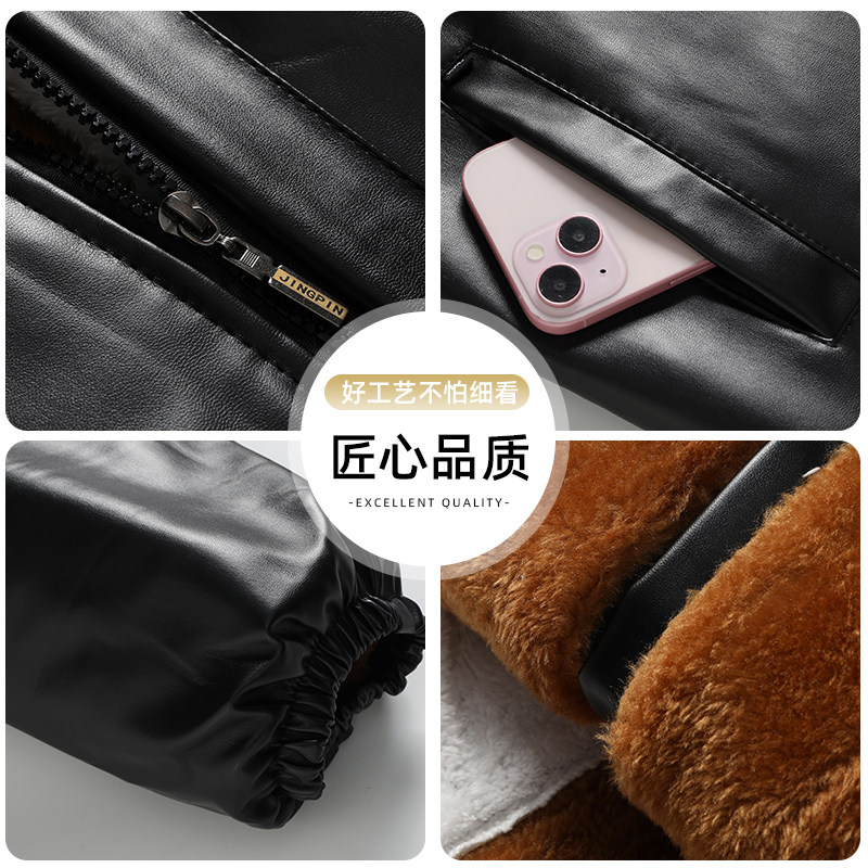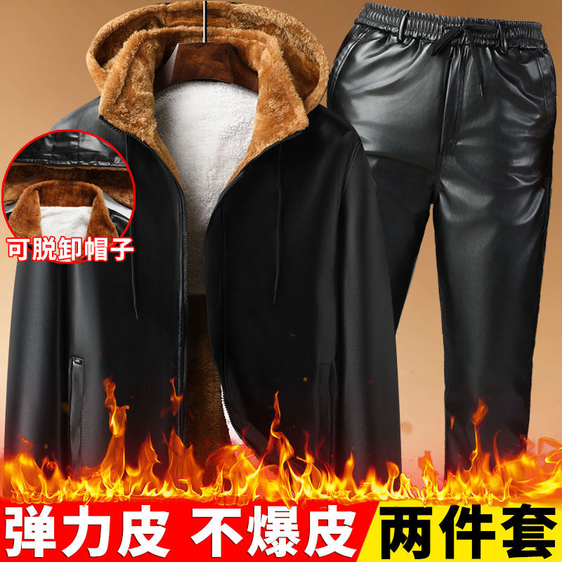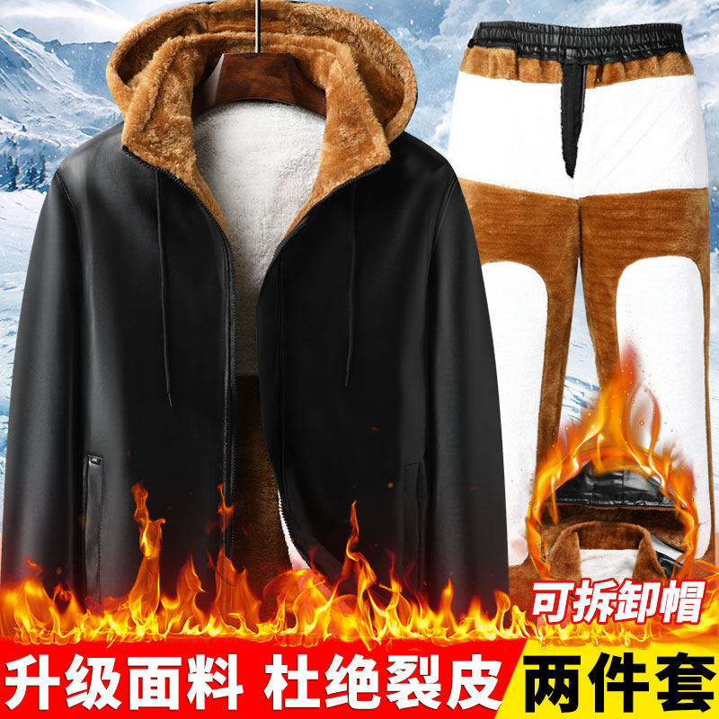 冬季男士皮衣皮裤套装加绒加厚防风保暖摩托车代驾外卖皮夹克男款