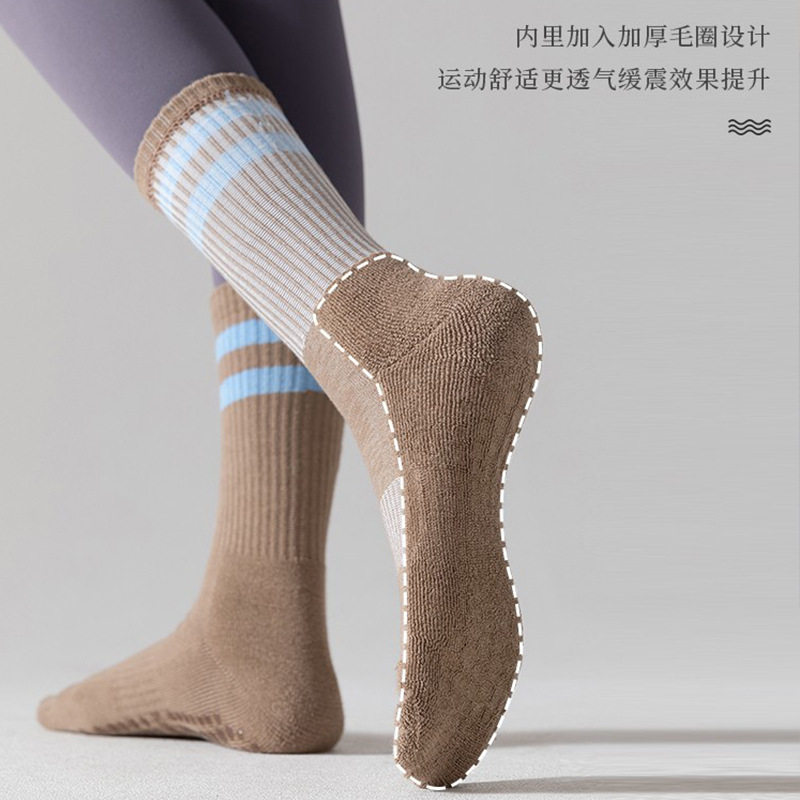 多肉女孩瑜伽袜防滑普拉提中筒压力袜纯棉运动毛圈健身成人中筒袜