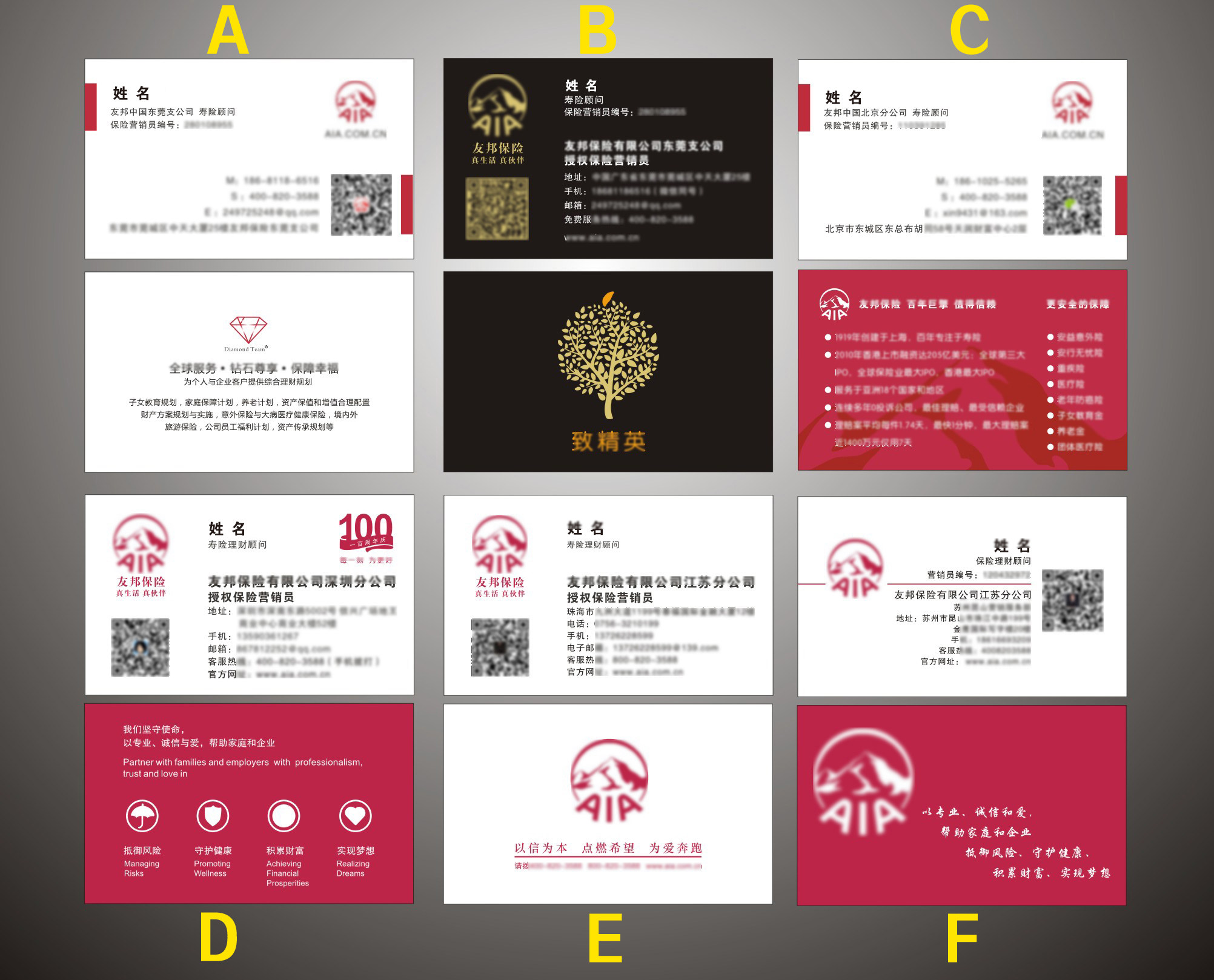 AIA友邦保险营销员个性名片 感恩回馈哑膜200张35元包邮