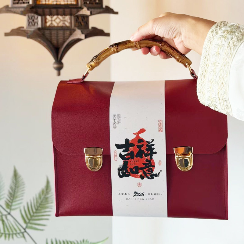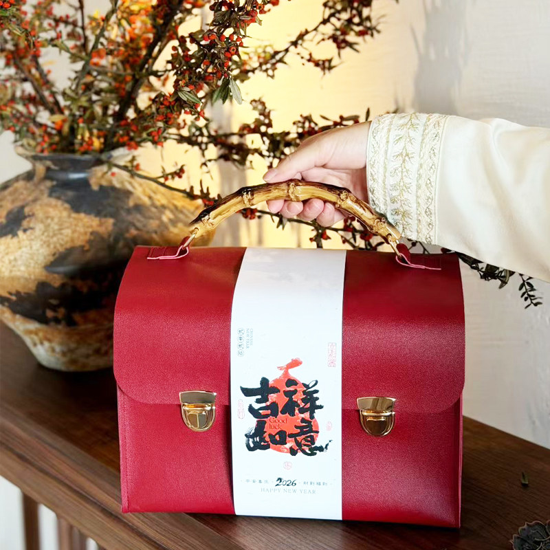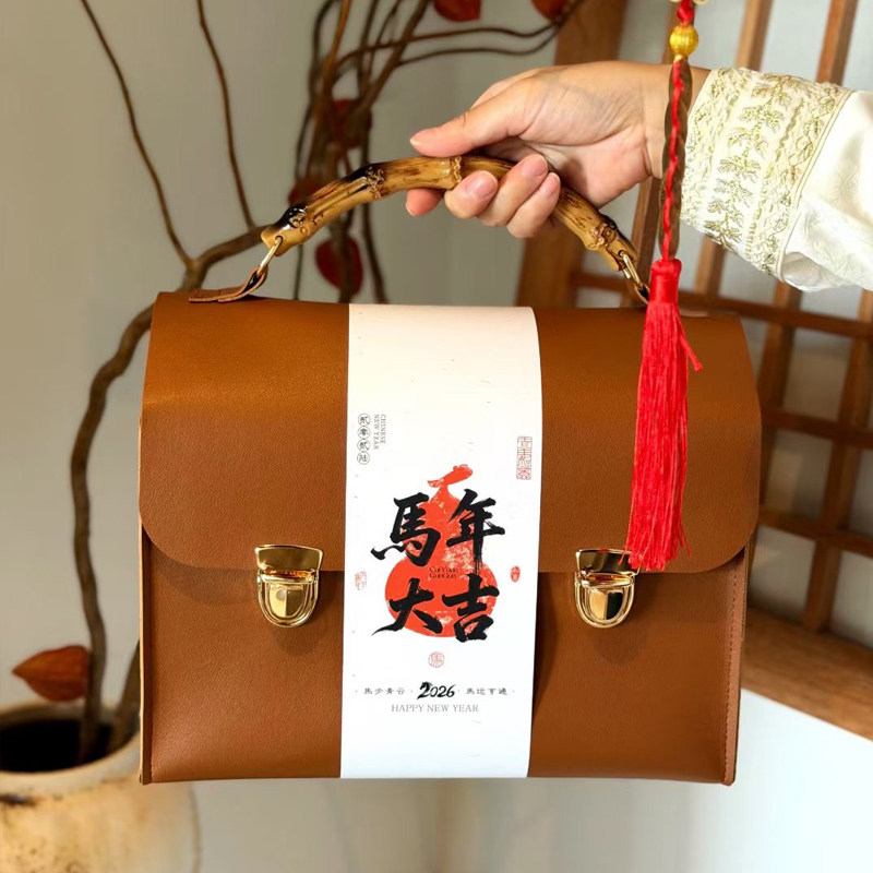 2026马年新款复古皮革新年包装礼盒商务手提盒伴手礼礼品包装盒子