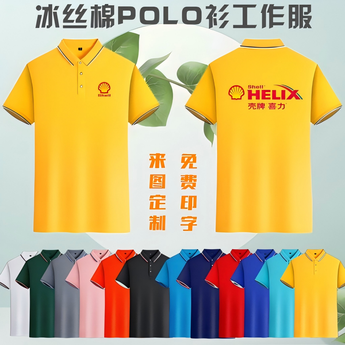 冰丝棉POLO衫定制壳牌工作服男女翻领T恤工装短袖印字logo广告衫