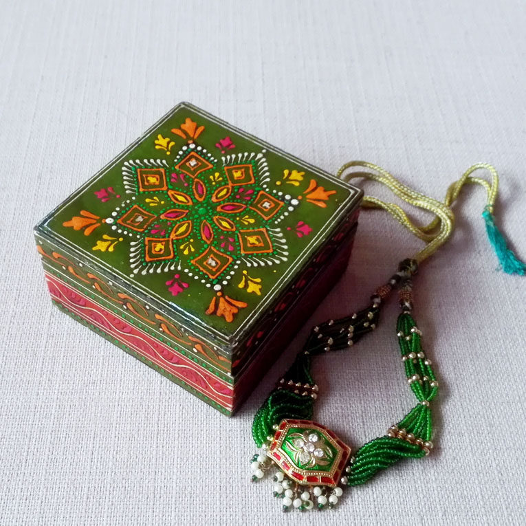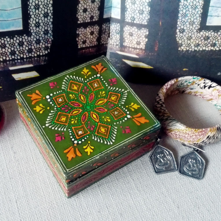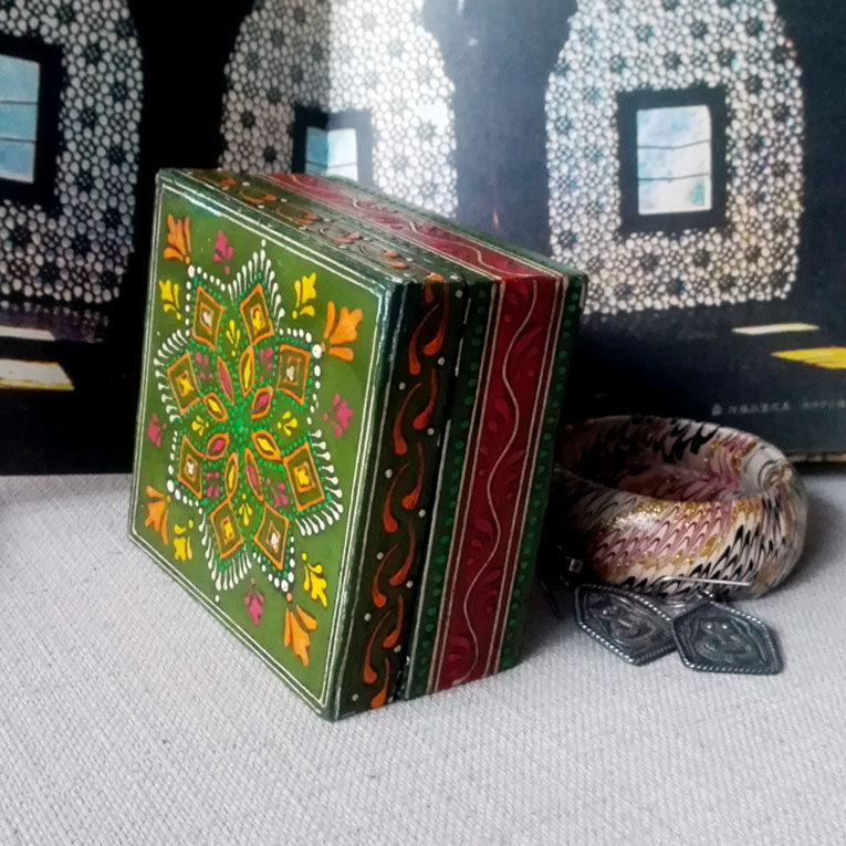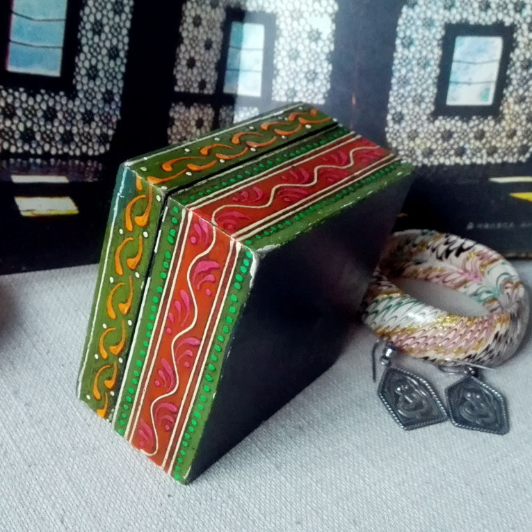印度特色手工艺品古朴雅致彩绘木质首饰盒东南亚风格古着首饰收纳