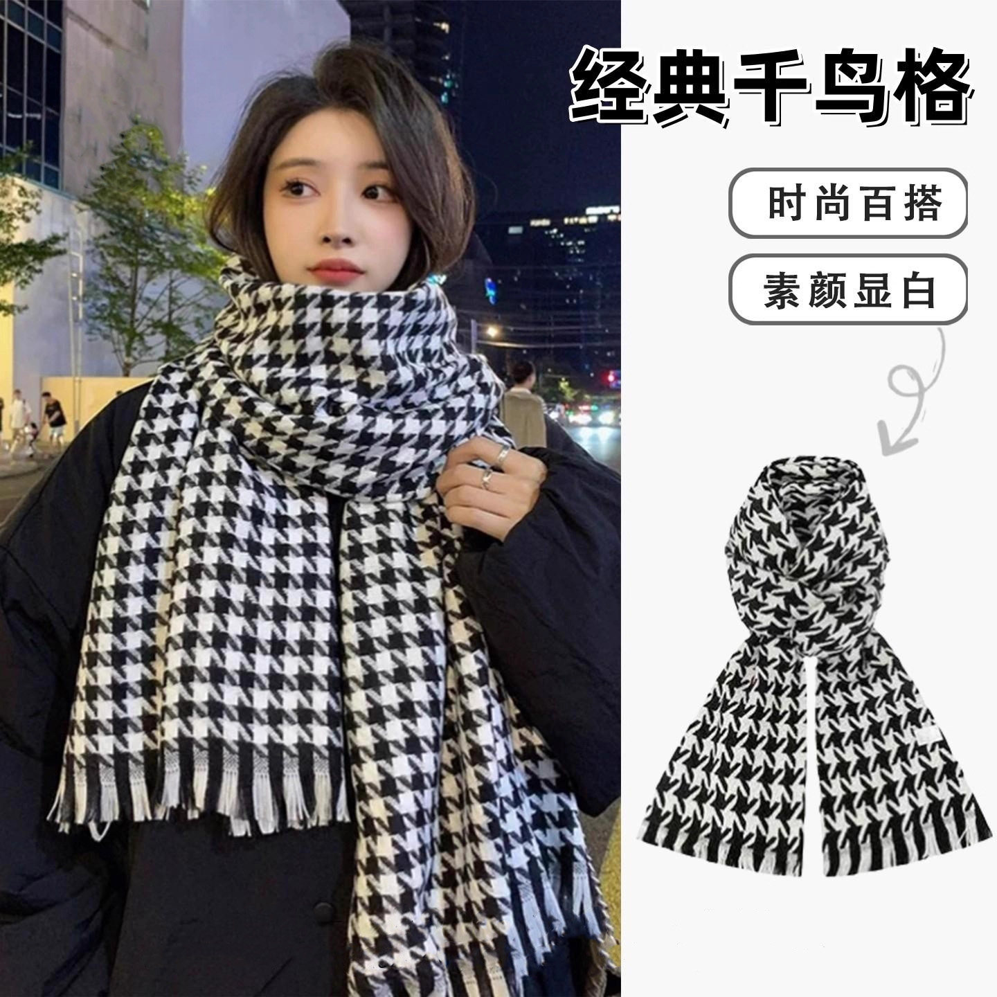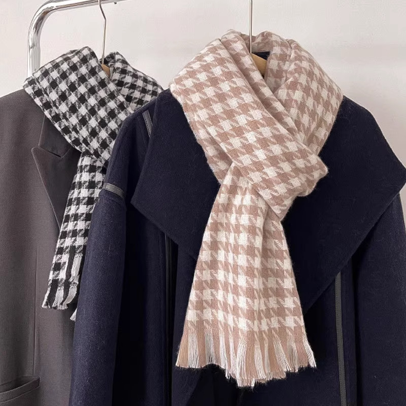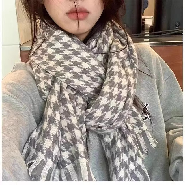 千鸟格围巾女高颜值2025新款韩系百搭冬季保暖围巾围脖披肩两用