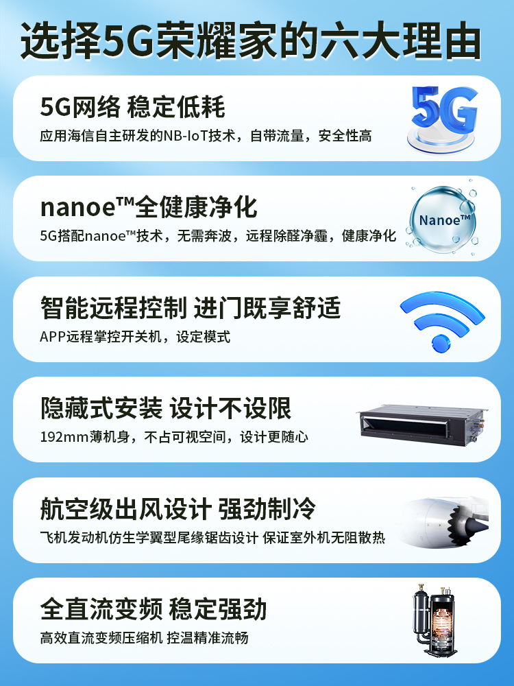 海信中央空调5G荣耀家5匹1拖4Nanoe家用空调多联机变频三室两厅