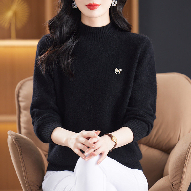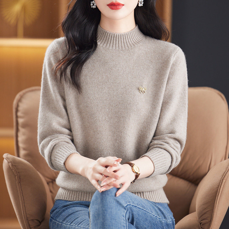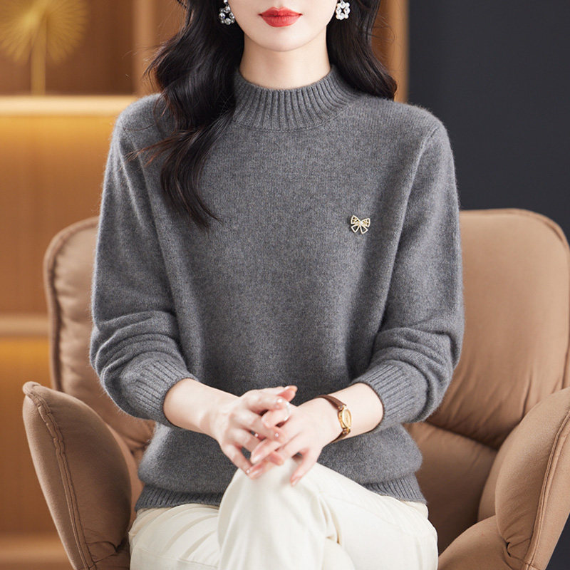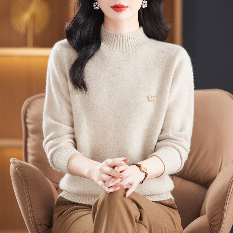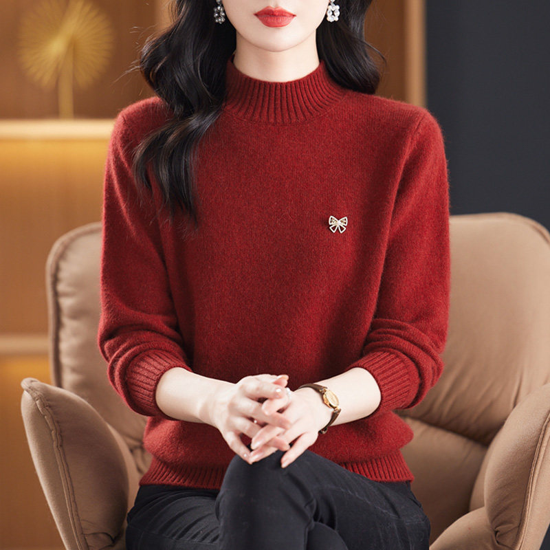 2025年新款冬季中年羊毛衫女士半高领加厚羊绒毛衣妈妈装纯色打底