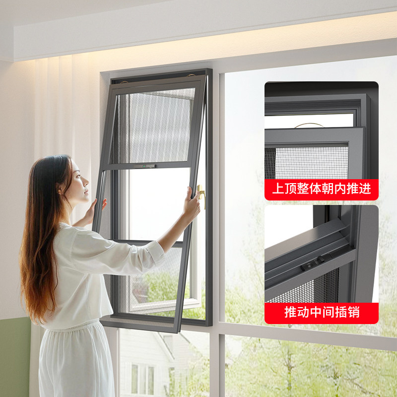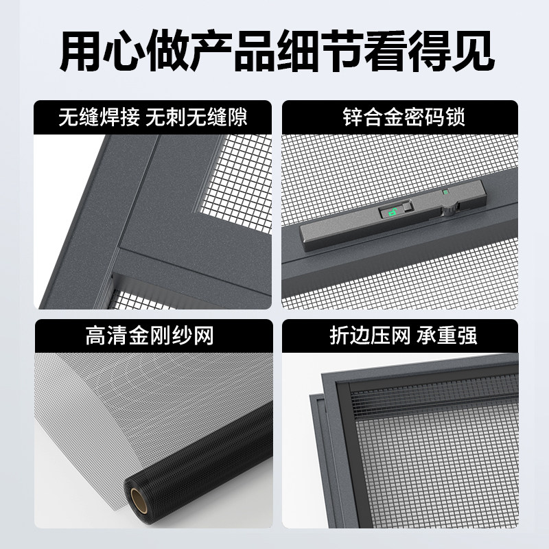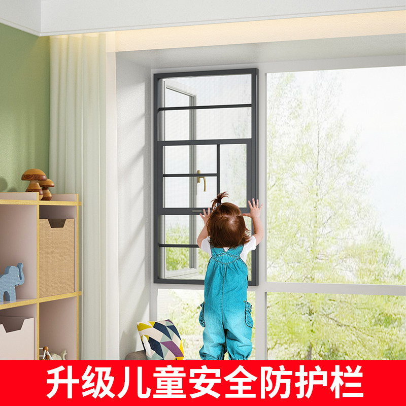 防盗网纱窗防护栏一体可拆卸上下推拉式纱窗网自装金刚网纱窗定制