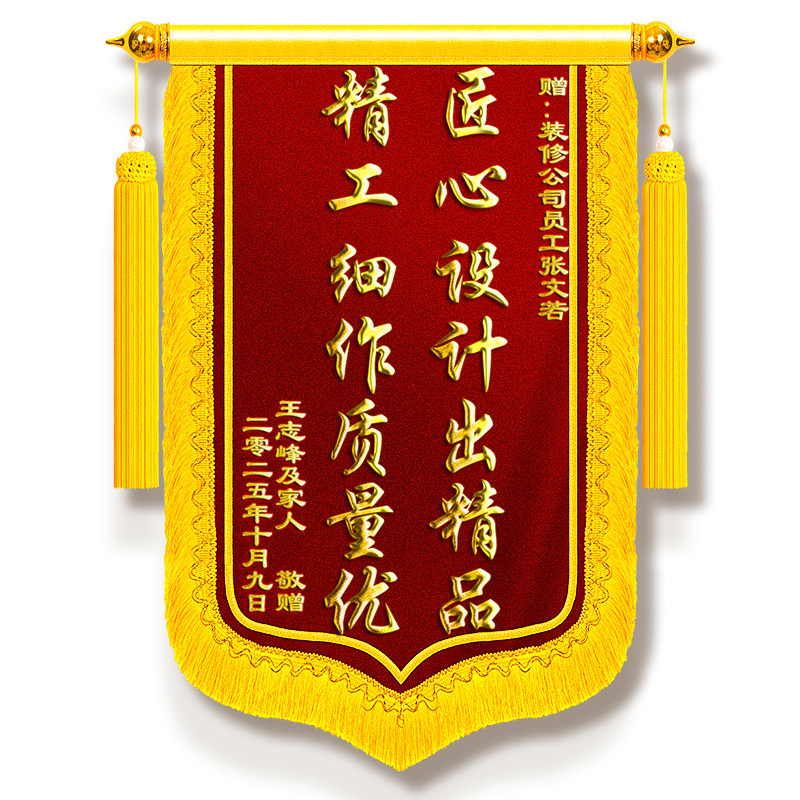 锦旗定制感谢装修公司定做送设计师监理服务工程师工长项目经理施工师傅展示工地形象匠心设计施工专业旌旗