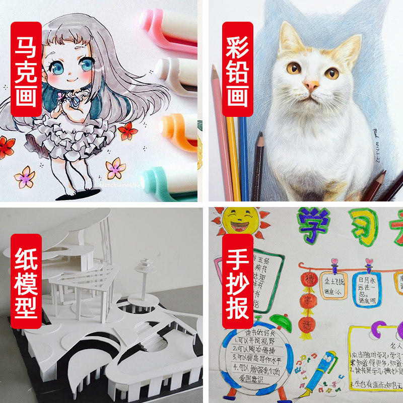 白卡纸硬卡纸美术纸儿童纸手抄报专用纸荷兰4k开绘图纸马克笔手绘A4画画纸8K开加厚A3白色卡纸180克300克双面