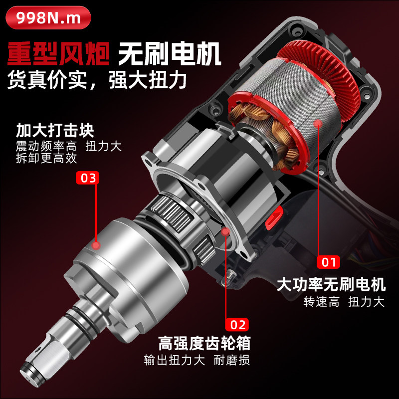 电动风炮冲击扳手大扭力轮胎汽修锂电工具架子工无刷充电套筒板手