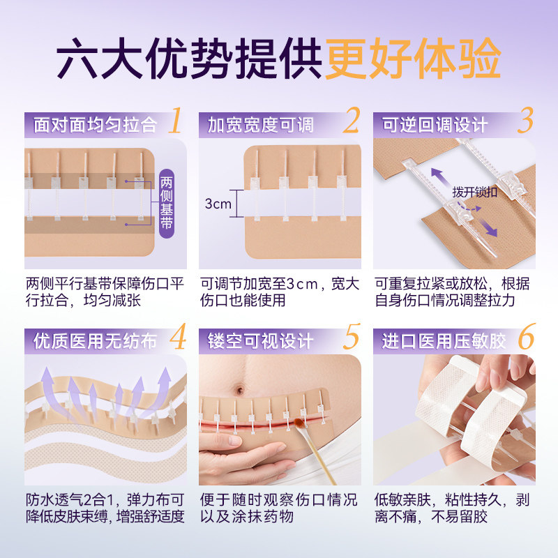 可孚医用减张器剖腹产术后伤口愈合皮肤疤痕贴可回调免缝拉合祛疤