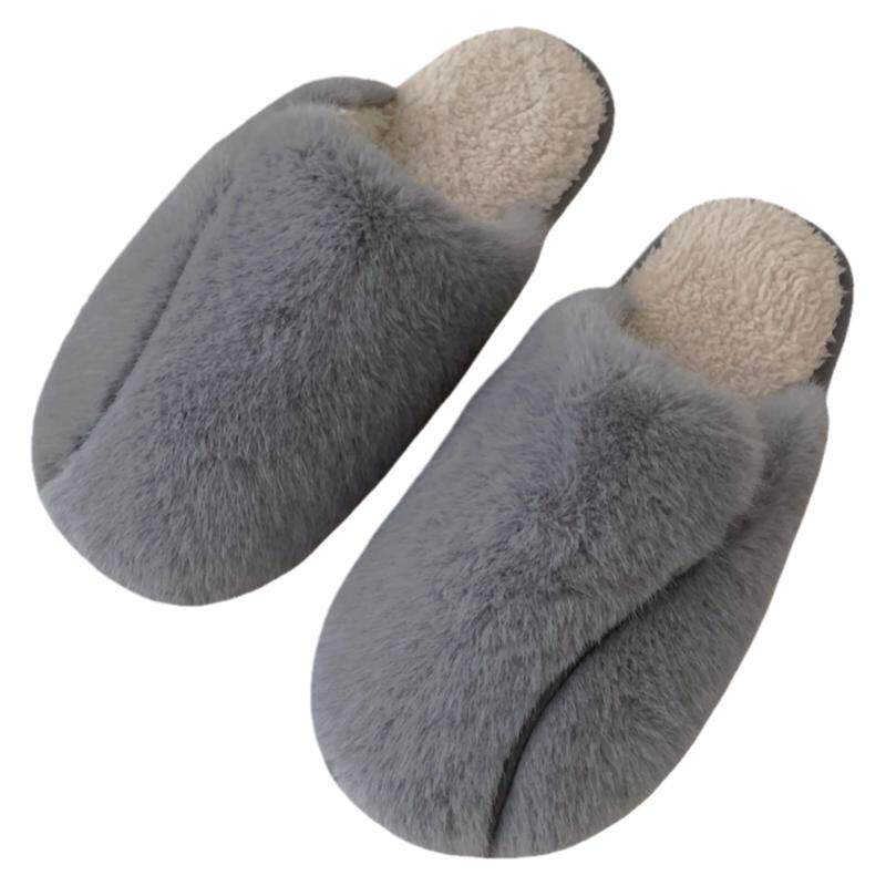 细细条 男士室内休闲防滑保暖包头毛毛鞋日系简约拼色冬季棉拖鞋