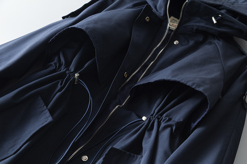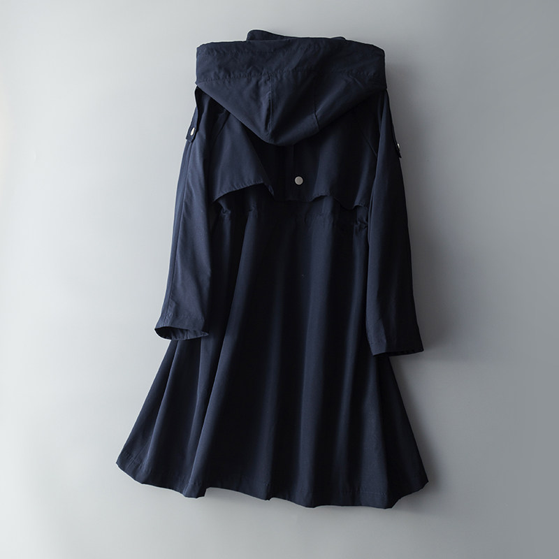女士拉风长款风衣拉链连帽过膝抽绳收腰宽松外套春秋通勤休闲显瘦