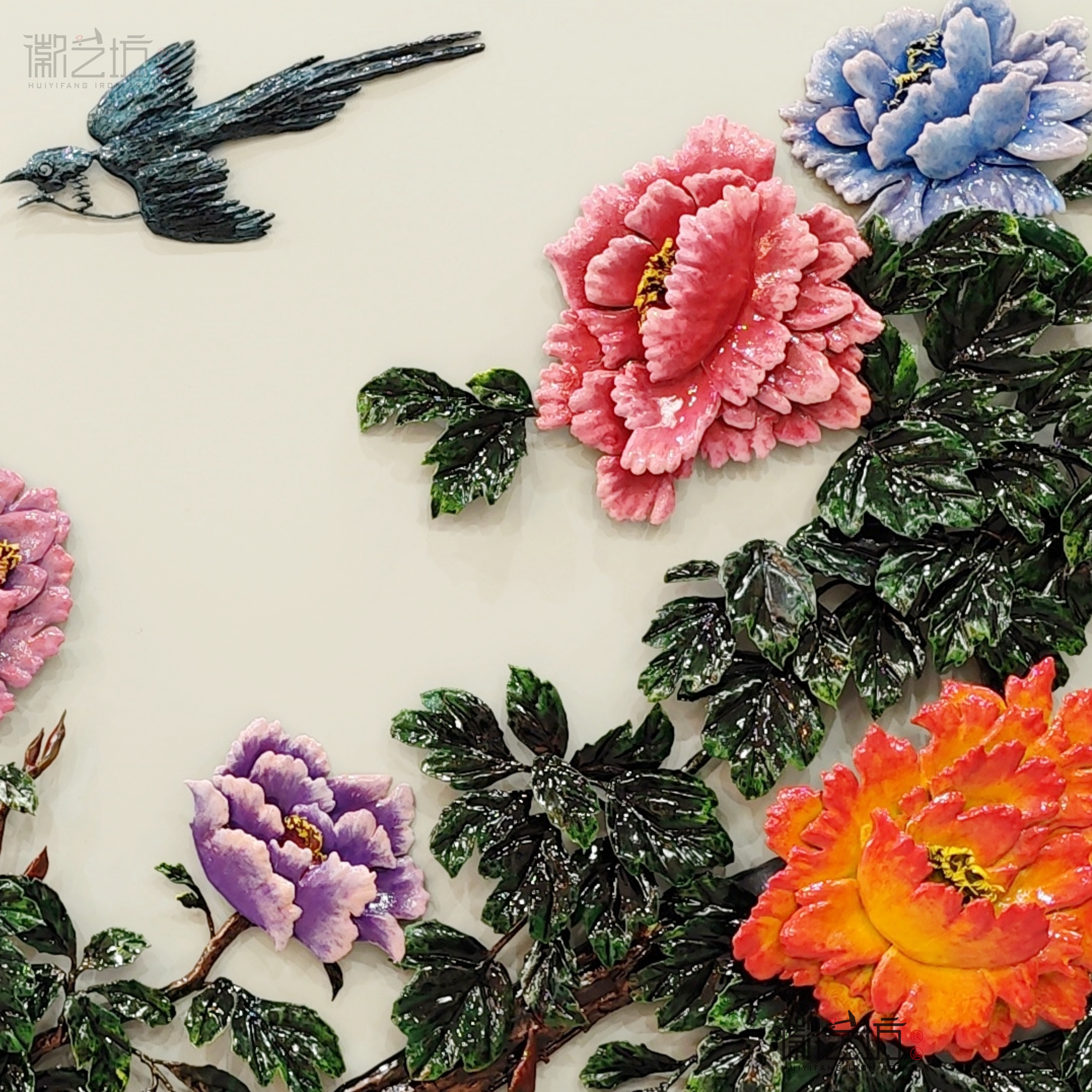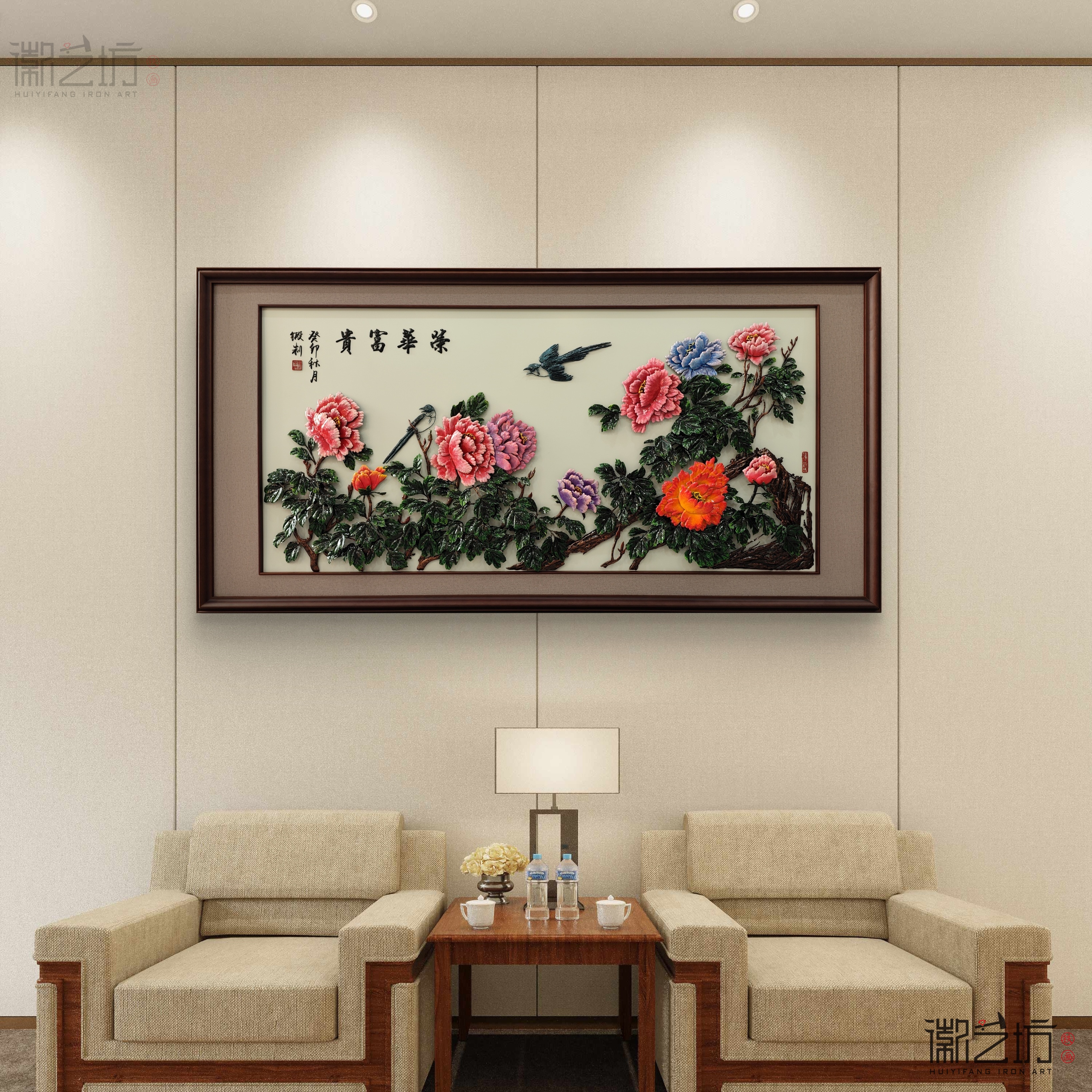 荣华富贵牡丹花鸟图家居客厅装饰画名师纯手工锻制徽艺坊出品