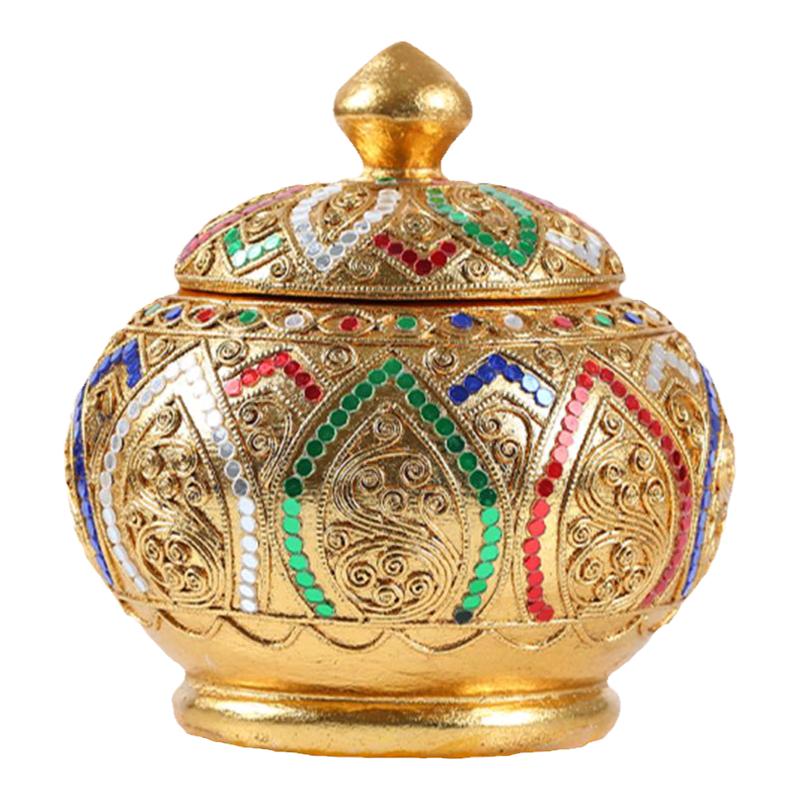 实木桌面金色储物罐子摆件泰国装饰品干果零食茶叶家居茶几收纳罐
