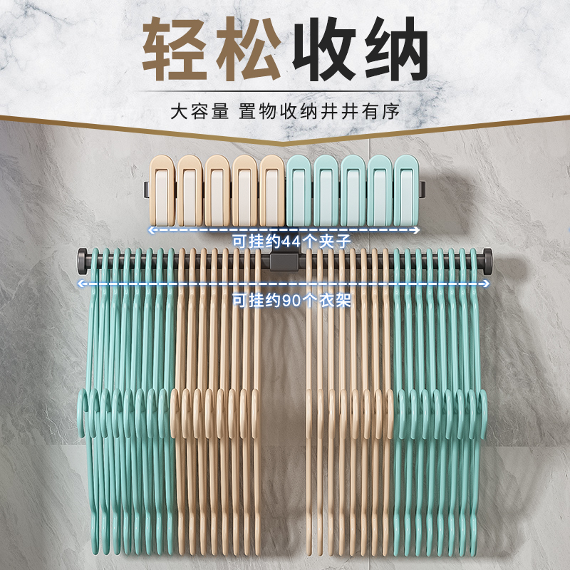 放晾衣架收纳架免打孔壁挂式整理架子家用阳台放夹子多功能挂钩杆
