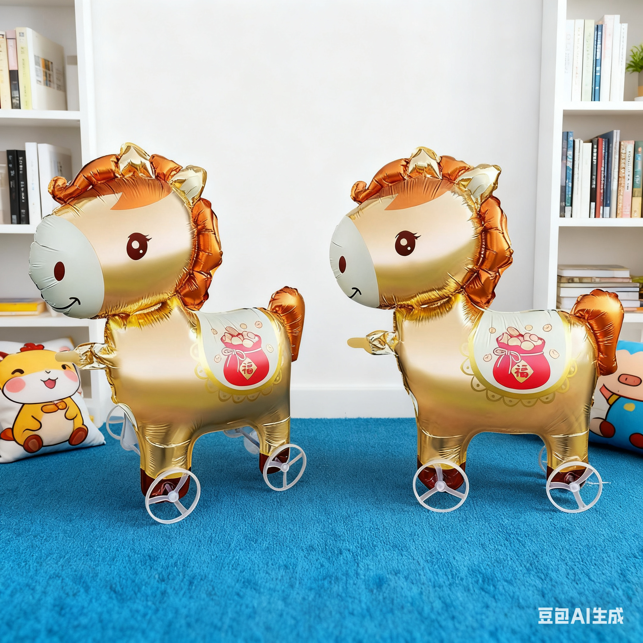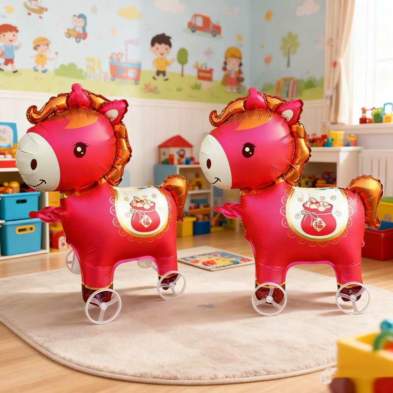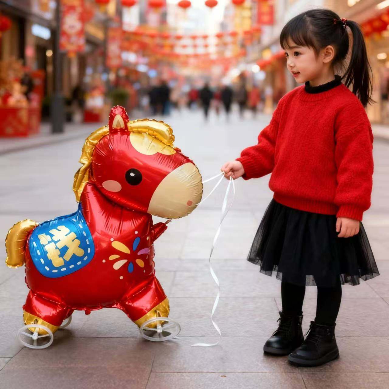 新年小马气球可以行走的带轮子马年气球儿童玩具过年礼物装饰布置