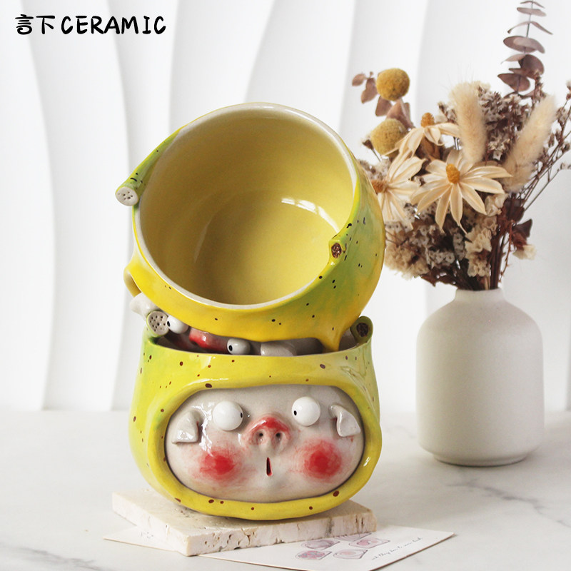 言下陶瓷餐饮具可爱猪猪香蕉碗酸奶水果汤碗搞怪釉下彩创意景德镇