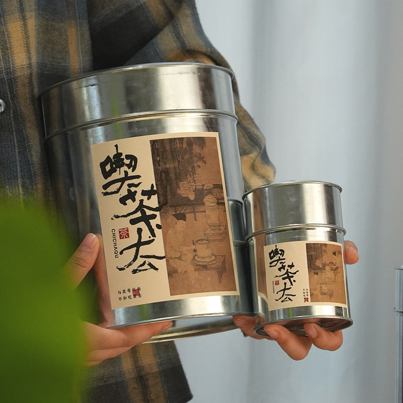 复古镀锌茶叶罐金属铁罐通用岩茶乌龙茶银针单枞茶叶铁罐存茶罐