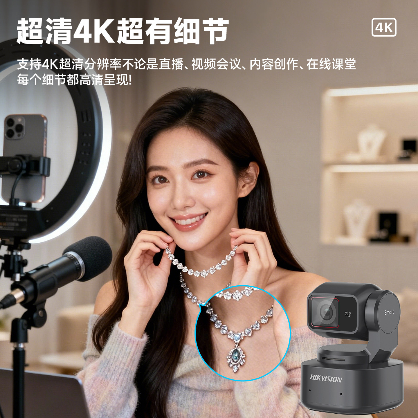 海康威视4K超清智能直播摄像头电脑淘宝抖音美颜直播专用摄像设备