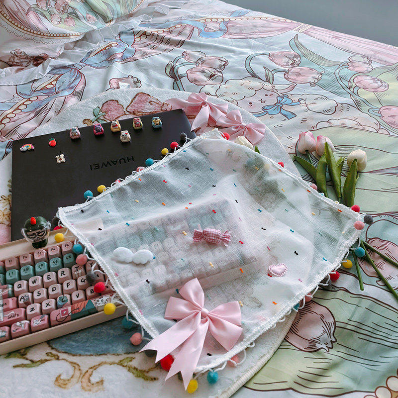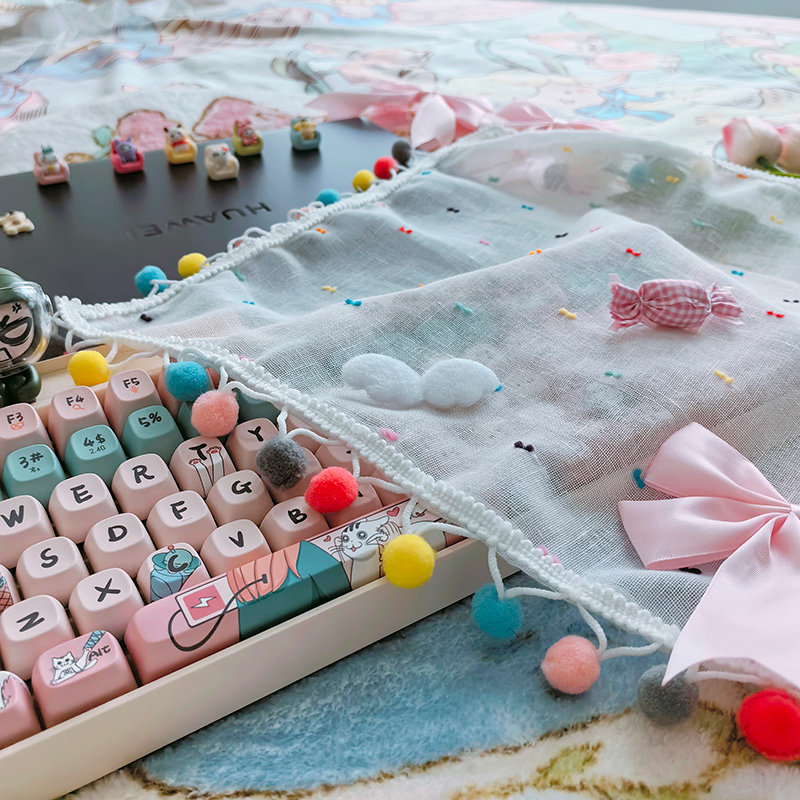 笔记本防尘盖布透明居家布艺显示器防尘盖巾多巴胺柜子遮尘布彩球
