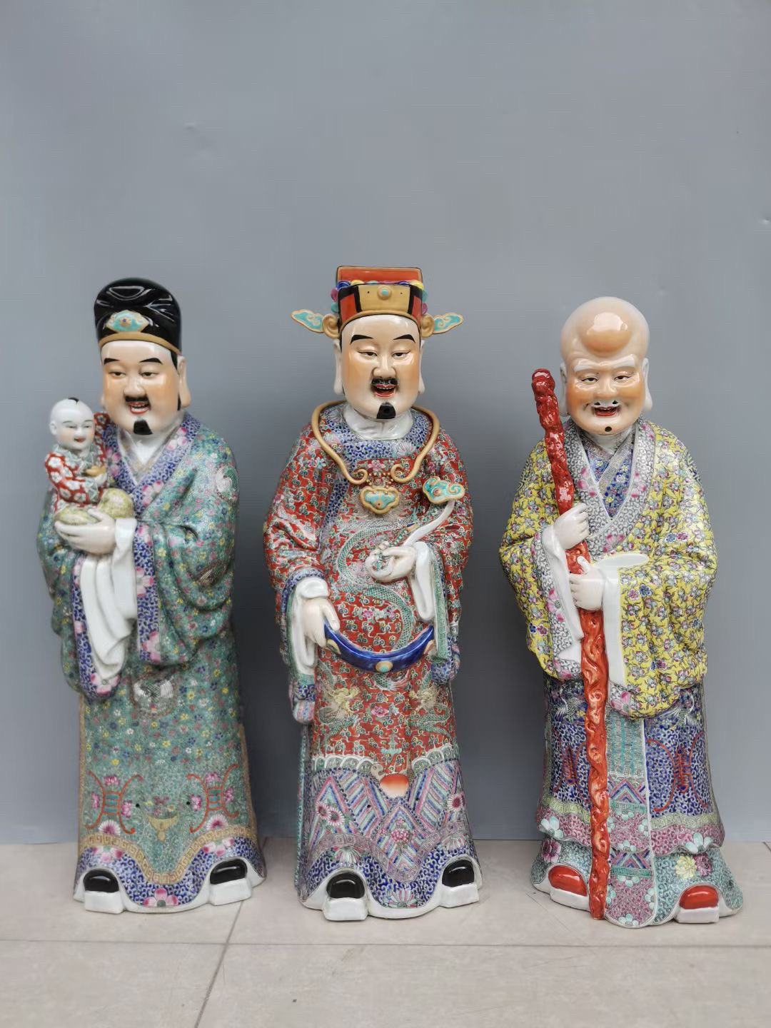 景德镇瓷器手绘精品雕塑瓷三星一套精品陶瓷中式摆件古玩古董收藏