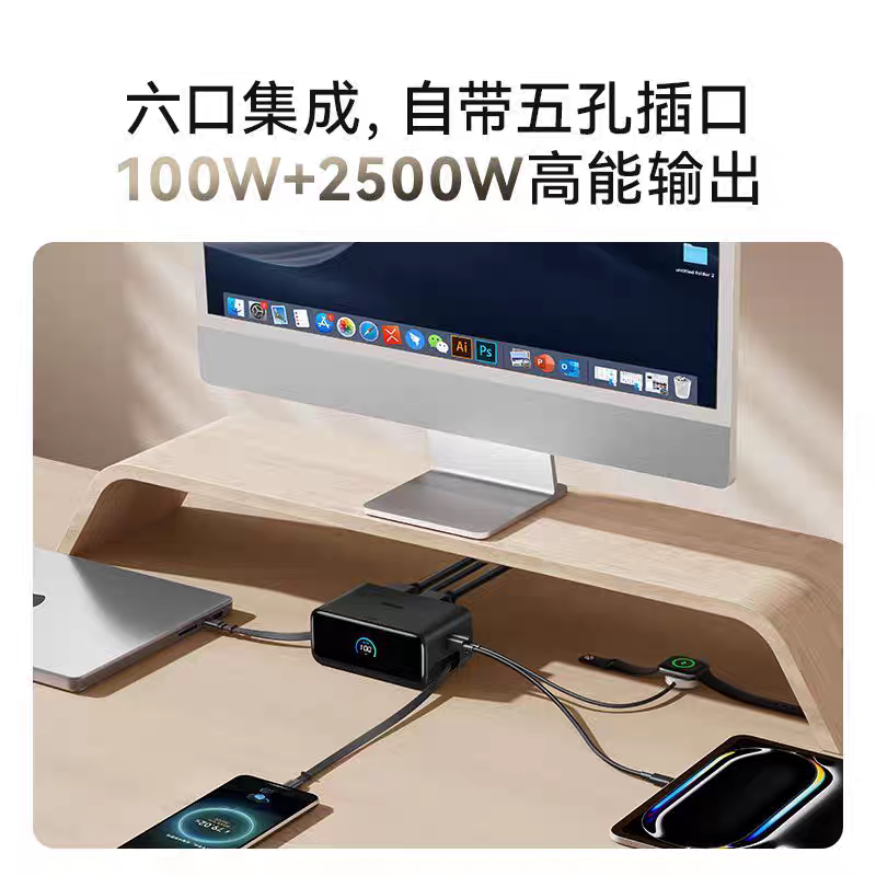 ANKER安克Mix100W桌面充电站伸缩线适配华为100W桌面充Mix充电站66W快充平板笔记本多口充电器AC插座官翻