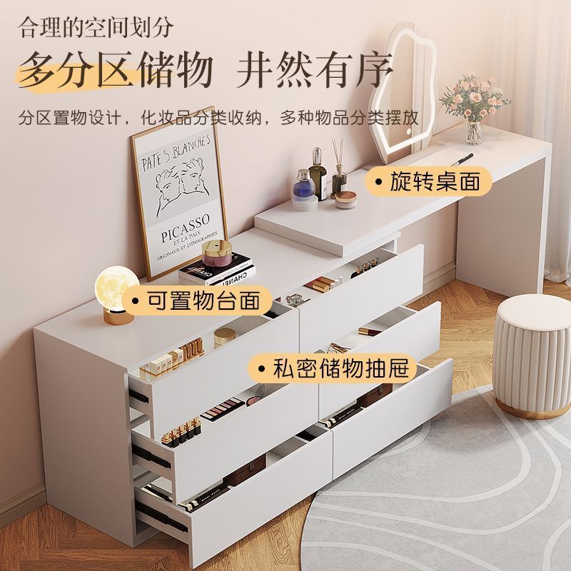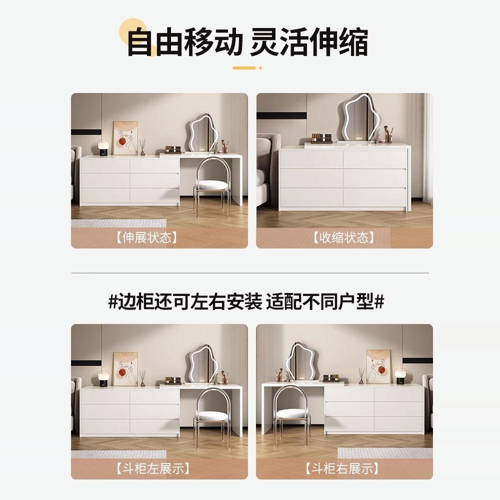 梳妆台斗柜一体现代简约卧室书桌网红轻奢小户型奶油风伸缩化妆桌