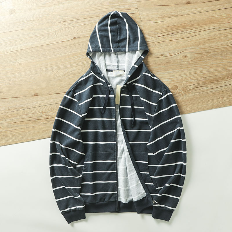 自留推荐 外贸尾货秋季男时尚潮流开衫休闲连帽条纹长袖卫衣上衣