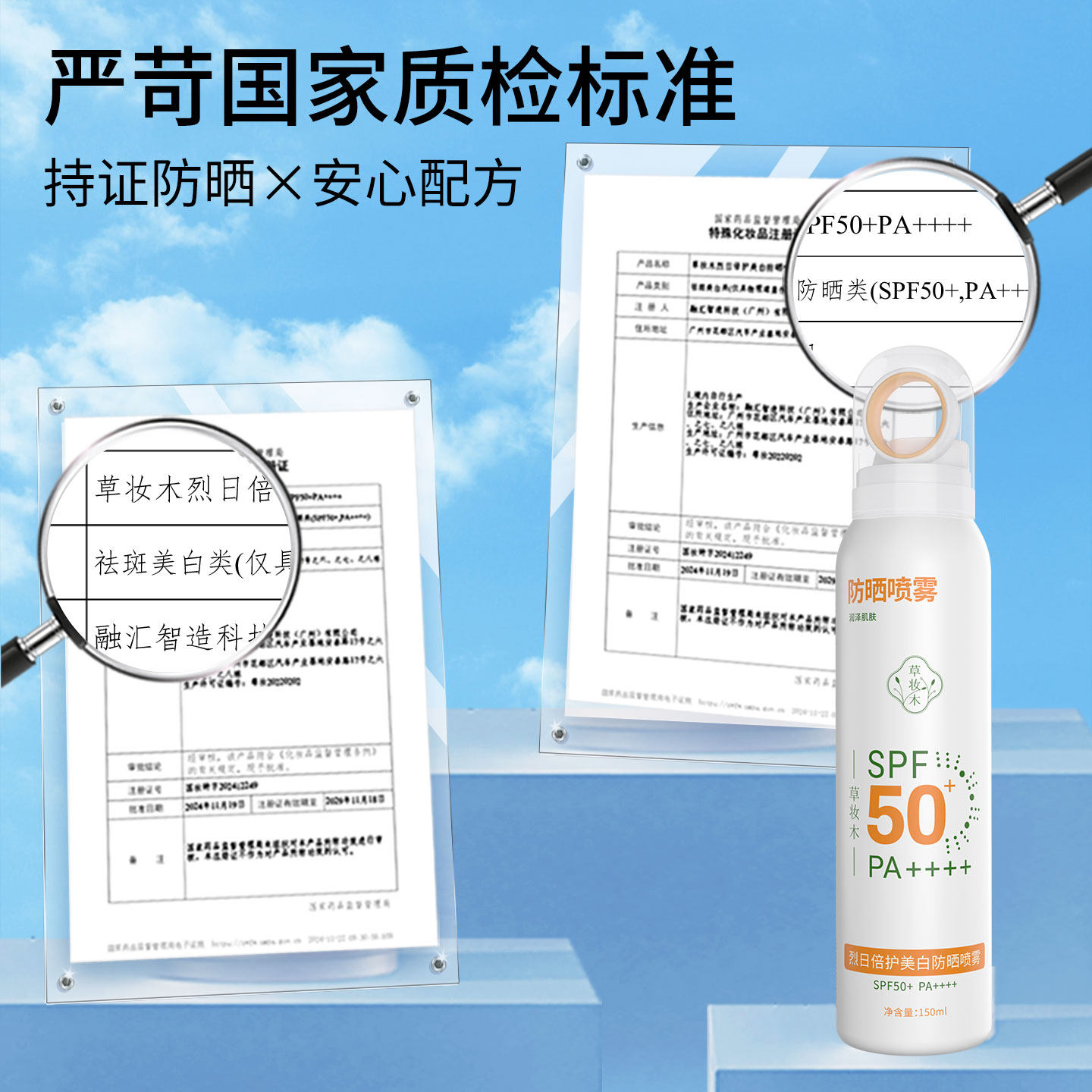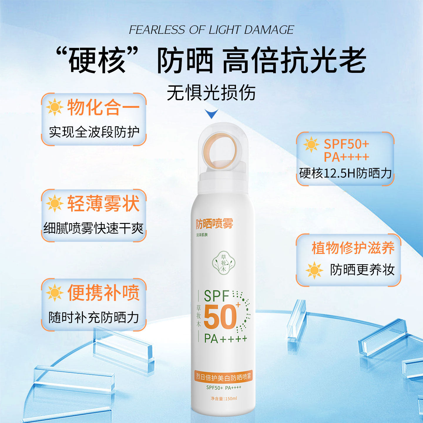 草妆木防晒喷雾50倍防紫外线学生专用军训全身官方正品草庄木com