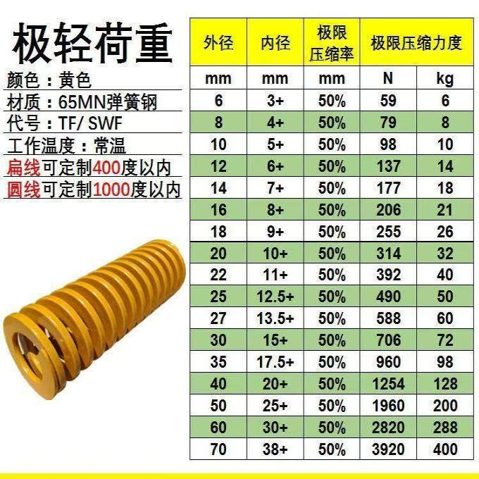 进口模具弹簧黄色TF合金钢扁线矩形压缩弹簧减震高弹耐高温压簧