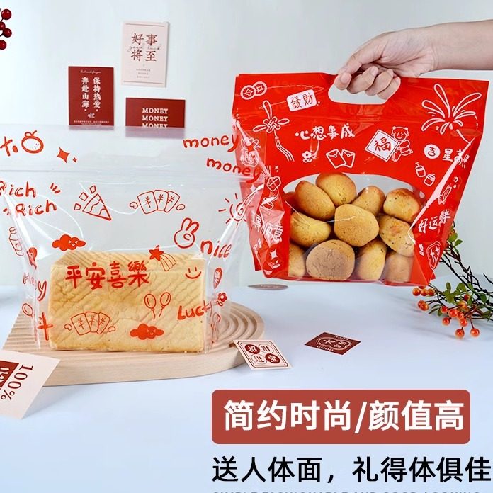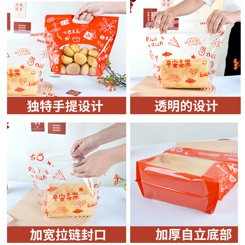 新年吐司袋面包炒货包装袋450克红色雪花酥牛轧糖糖果栗子打包袋
