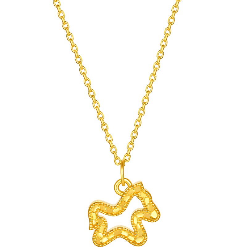 周六福黄金5d硬金吊坠女定价黄金碎碎冰生肖马颈饰本命年新年礼物