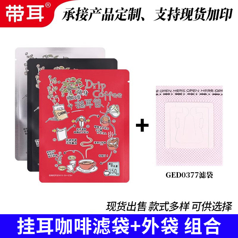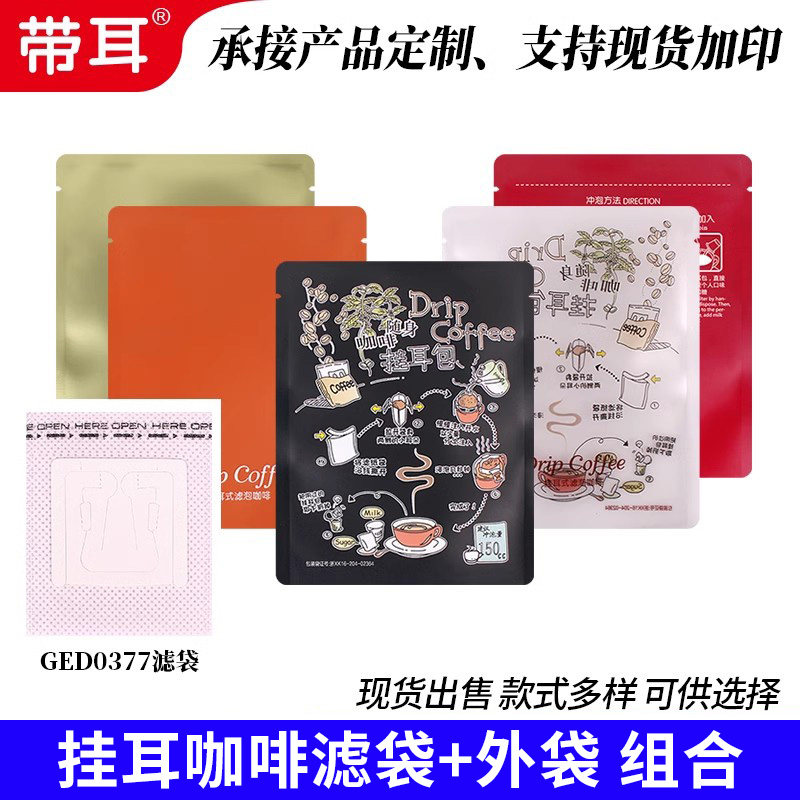 日本材质咖啡滤纸挂耳滤袋+牛皮纸铝箔挂耳包装袋100套挂耳咖啡袋