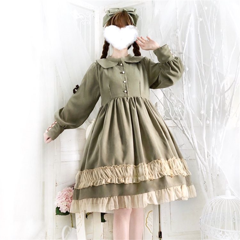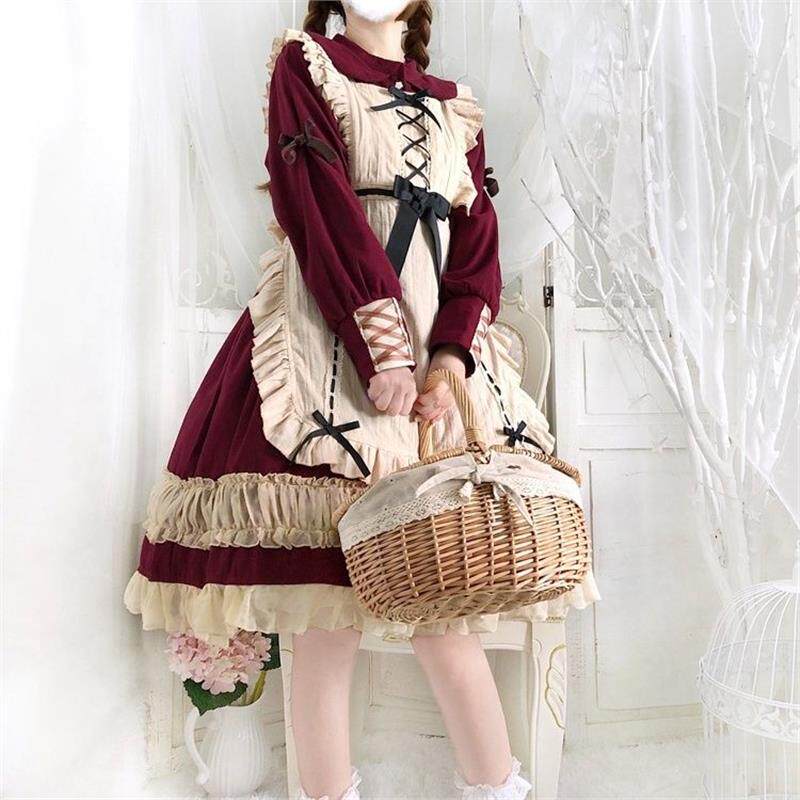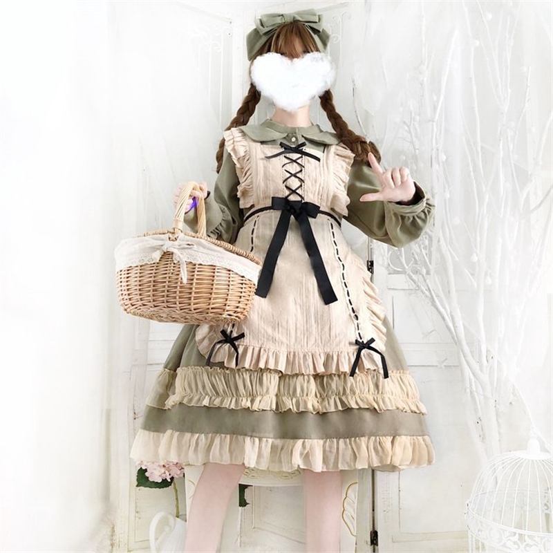欧培拉 长袖OP蕾丝Lolita围裙日常洋装日系软妹洛丽塔少女连衣裙