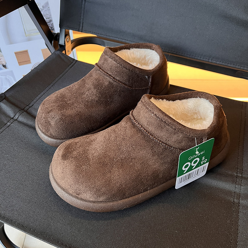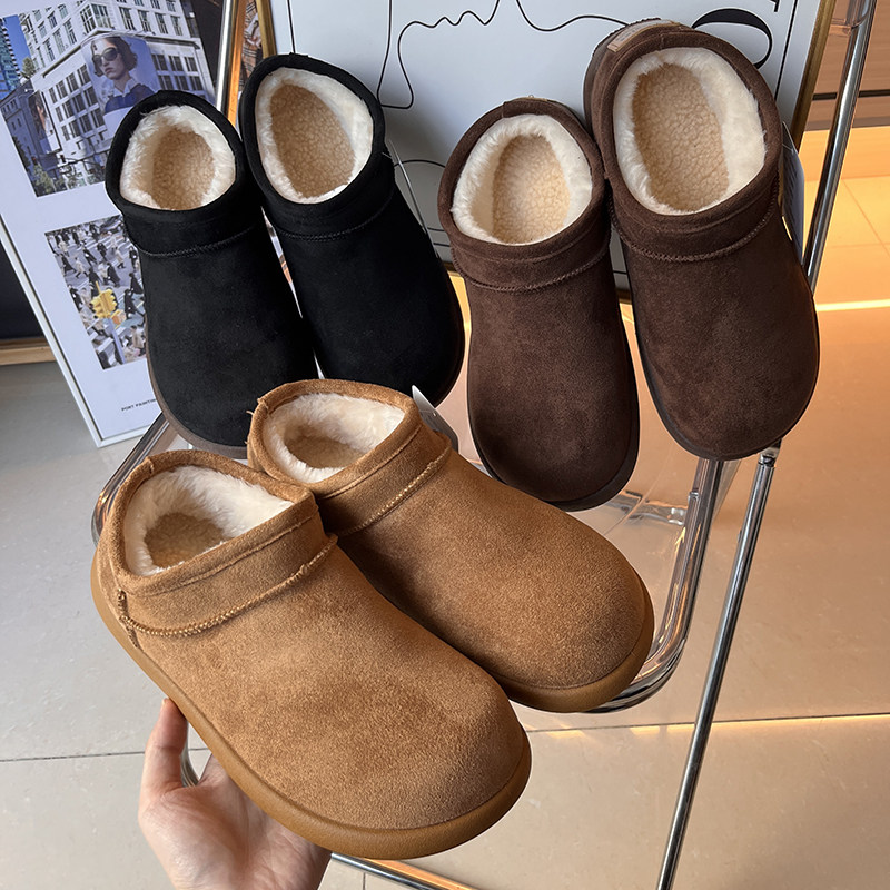 反绒面+橡胶底冬季加绒雪地靴男女东北保暖棉鞋防滑面包鞋短筒靴