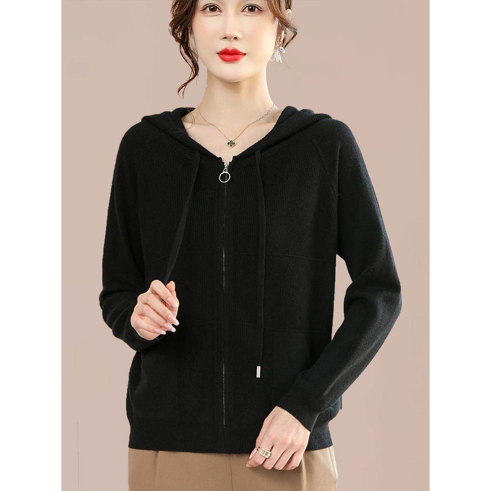 短款针织开衫女士毛衣卫衣外套春秋季2025新款早秋装拉链连帽上衣