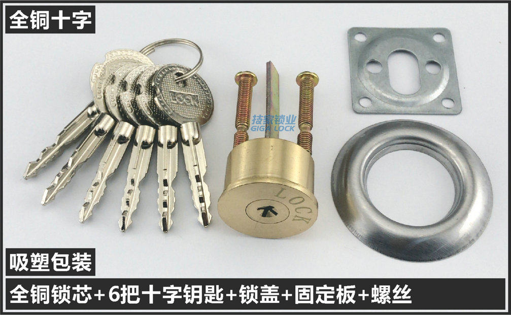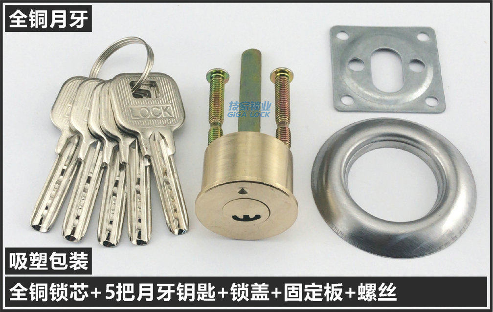 大门锁芯C级外装门锁老式防盗锁芯月牙十字单头木门铁门通用锁头
